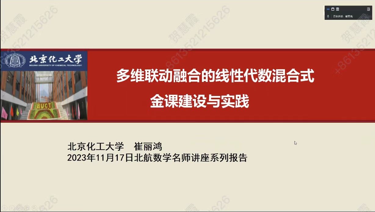 20231117日,北京市教学名师、北京化工大学崔丽鸿教授,应邀为到公司做了“多维联动融合的线性代数混合式金课建设与实践”的学术报告。