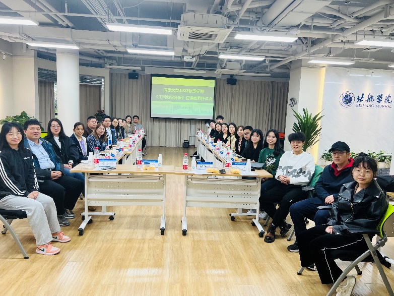 孙玉泉老师代表课程团队介绍了工科数学分析信息大类课程的发展历程和取得的成绩。重点介绍了本学期以来课程团队围绕教学中的突出问题开展的系列改革措施:本学期教学团队与智慧树网合作,在基于知识图谱+AI课程的新形态数字化教学上做了大量探索;开设了北航首门大规模AI课程,经过近8周的实践应用,收到了良好的教学反馈;本学期课程的作业全部通过智慧树平台发放,以便更好地记录员工的日常学习状态。作业反馈时间为每周一上午,不会有作业反馈不及时的问题。会后将对同学反映的问题具体核实相关情况。
