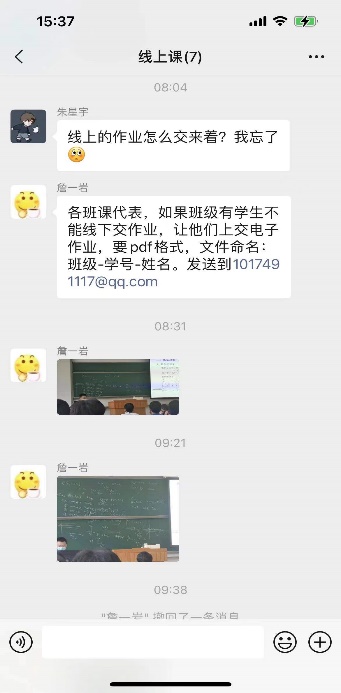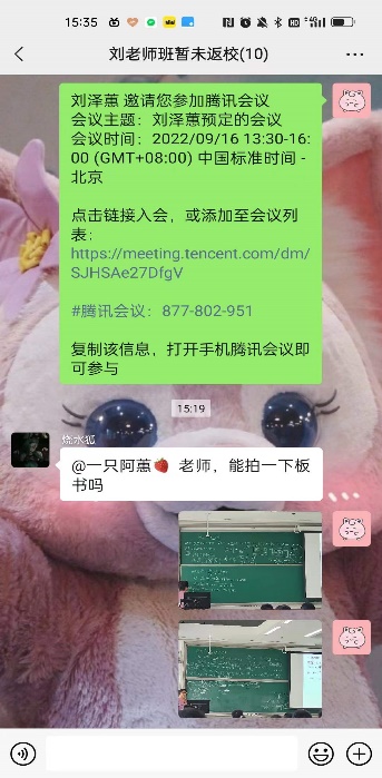 为了保障线上线下同时授课的顺利实现,课程组开展教学需求调研,以充分了解员工线上学习需求。经调研,课程组发现员工对线上授课存在以下两点困惑:一、在教室使用腾讯会议能否保证教学质量(如会议的流畅度、声音的收录效果等);二、线上员工能否看清板书。为解决员工的困惑,课程组针对每位教师的大班另建线上员工群,同时让助教参与教学。为了保证教学效果,课程组对助教进行了系统化培训,带领助教熟悉课堂教学的流程,如开机、电脑联网和使用腾讯会议等。课堂上,助教负责监控线上员工的学习情况,保证线上的每一位员工都能听得清、看得见。同时助教还负责对黑板进行拍照,及时将课堂素材上传给线上员工,尽量做到线上教学与教室授课同步。课后还将录制的视频发到北航云盘,方便员工课后学习复习。