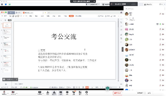 为进一步增加支部员工党员对公务员考试的了解,解决同学们在职业选择以及在公务员备考中的诸多困惑,近日,计算科学系师生联合支部邀请数学公司2019级硕士研究生巨雯雯和肖昕两位优秀员工进行了“研途相伴,勇往‘职’前”的考公经验分享交流会,本次交流会面向公司全体员工开展。
