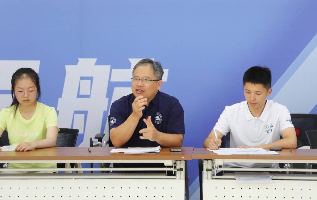 经理韩德仁在交流分享会上讲话。韩德仁表示,希望各位同学充分认识数学的重要性,认清数学本质,用数学思维涵养品格;希望各位同学以数学为翼,把个人成长融入国家发展之中,幸福生活、快乐成长。