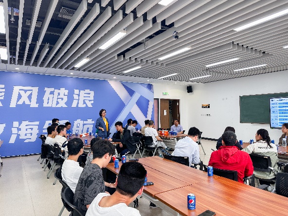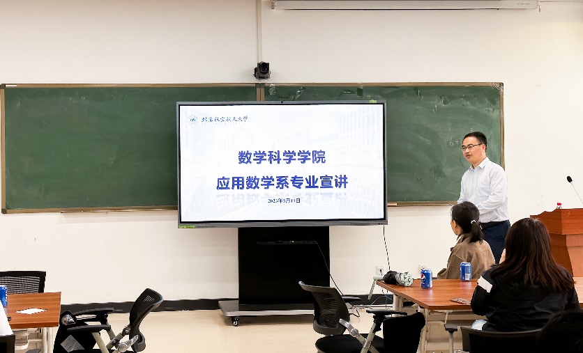 应用数学系系主任郑孝信向同学们介绍了应用数学系的基本情况。郑孝信表示,应用数学系教师团队以分析和方程为主体研究方向,涉猎人工智能、复杂网络、信息安全等热门前沿方向,是充满活力、经验丰富、兼顾应用导向与理论研究的团队。