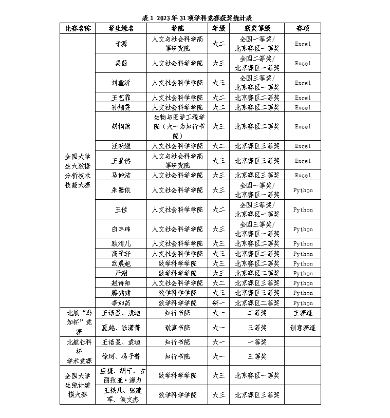 近日,由教育部高等公司统计学类专业教学指导委员会、全国应用统计专业硕士学位研究生教育指导委员会指导,中国科技新闻学会大数据专委会和北京大数据协会共同主办的第二届全国老员工大数据分析技术技能大赛全国总决赛成绩揭晓。经过激烈角逐,北航学子获得全国一等奖2项、全国二等奖1项、全国三等奖3项以及北京赛区一等奖6项、二等奖7项、三等奖6项等25奖励。betway西汉姆联平台刘超老师被评为优秀领队教师、优秀指导教师。此外,刘超老师在春季指导了知行书院、致真书院等大一员工获得北航“冯如杯”竞赛二等奖、三等奖、“社科杯”学术竞赛一等奖、三等奖等4项,在夏季指导了大三员工获得全国老员工统计建模大赛北京赛区一等奖、三等奖各1项。员工累计获奖30项,其中文科生获奖26项。