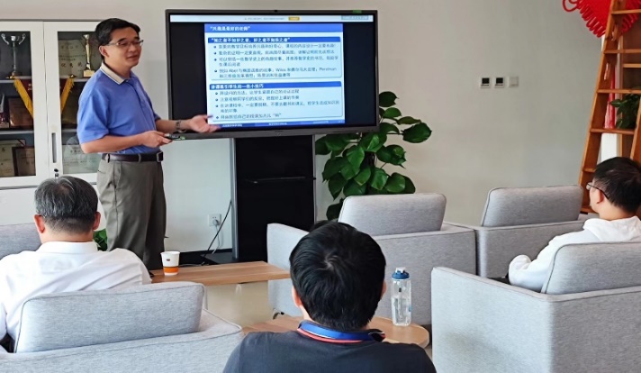 马老师长期从事代数几何、偏微分方程和计算机代数等领域的研究,学术严谨,而且教学突出。马老师曾为中法工程师公司(理科实验班)、华罗庚班主讲《数学分析》、《实变函数》等重要基础课。他的课堂融学术性和趣味性于一体,严谨而不乏幽默,兼顾学科前沿性和专业基础性,激发了同学们的学习热情,深受欢迎与好评。此次报告中,马老师侃侃而谈,分享自己的教学经验和教学理念。“师者,所以传道受业解惑也”,在马老师看来,数学教师要传的“道”无疑就是数学思想,尤其是现代数学思想,这正是一门数学课的精髓所在。马老师还结合自己丰富的教学经历介绍了一些让看似高冷的数学课堂变得生动有吸引力的小技巧。从教学内容的组织到教材选择、试题设计,从课堂互动到课后答疑,马老师的报告涉及教学的各个环节,无不体现他的在教学上的细致入微和良苦用心。正如他所言,认真教学体现了对员工负责的精神;在教学上舍得投入时间和精力,是有师德的表现。