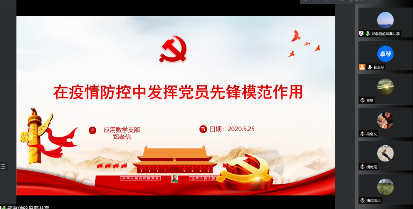 应用数学系支部党员同志积极参加了此次活动并发表学习心得体会,纷纷表示在今后的工作生活中,提高政治站位,强化责任担当,在做好教书育人工作的同时,坚决打赢疫情防控校园保卫战。