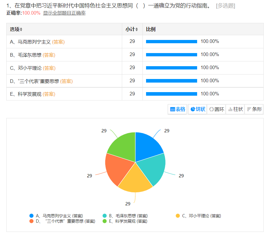 首先,孙玉泉老师带领全体党员重点学习了十九大对党章的重要修改,随后带领大家学习和回顾了党章的概述、党章的发展历程。为了提升党员们的学习效果,本次党课设计了党章知识要点随堂问卷测试,全体党员积极的参与答题并及时提交答案,充分调动了党员们的学习热情。