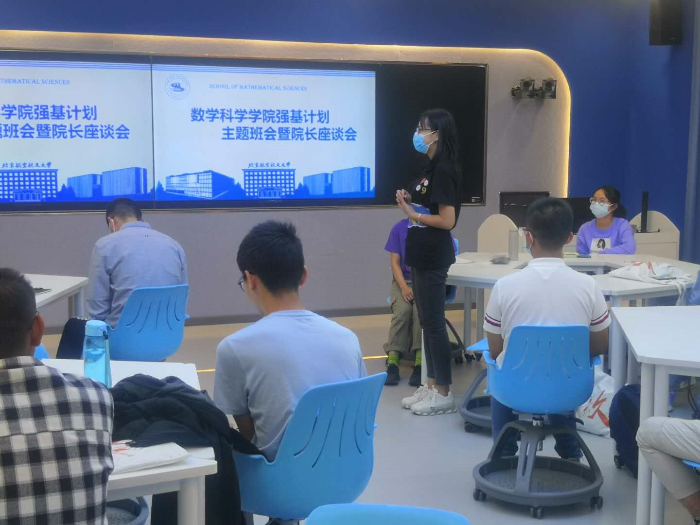 座谈会在轻松愉快的氛围下进行,同学们畅所欲言,依次进行了自我介绍,分享了自己选择强基计划的数学专业的初衷。韩经理首先对新生们选择强基计划的初衷表达了肯定,“数学学科强基计划服务国家重大战略需求,踏实地走好数学道路,需要空天报国情怀的引导,在这一方面,你我都是志同道合的战友”。