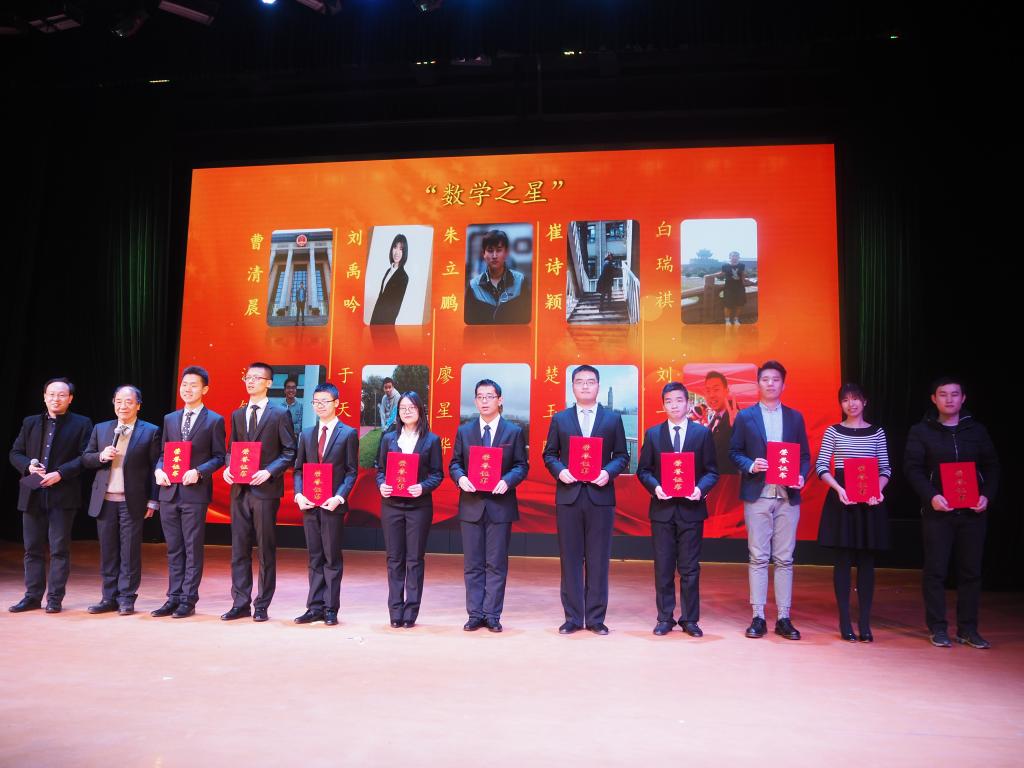 颁奖嘉宾们用电影颁奖礼的方式相互致意陶侃,员工们回忆时光荏苒,老师们谆谆点评送上祝福。期间同学们精湛的才艺展示和精心演绎的歌曲演唱、魔术表演等节目引人入胜,2016年“沈元奖章”的获奖者刘锦鹏同学用优化方法中的目标函数、约束条件的思维方式讲述了他数学之路上的成长故事,将整场颁奖典礼推向高潮。紧接着,本次压轴奖项数学之星最终揭晓,获奖代表白瑞祺,崔诗颖现场演绎的《追梦赤子心》也为同学们带来极大的鼓舞。