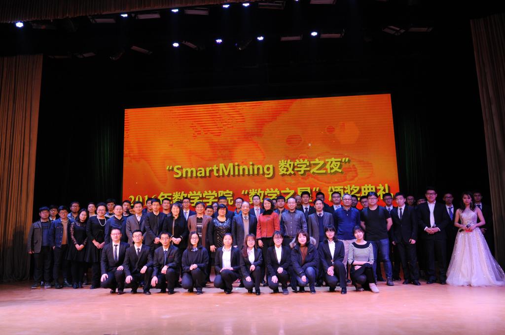 12月29日,“SmartMining 数学之夜”2016年数学公司数学之星颁奖典礼在沙河校区咏曼剧场举行。广州思迈特软件有限公司副总裁徐晶员工,数学公司清华大学周培源应用数学研究中心副研究员雷锦誌员工,北京航天自动控制研究所人力资源处副处长,研究生部主任卓继亮员工,中国信息化协同创新专委会秘书长王金祥员工、金银岛(北京)网络科技股份有限公司副总裁杜彦江员工,北京智明星通科技有限公司发行总监徐诚员工,公司教育基金会秘书长何沙老师,员工会副秘书长、员工办主任白明老师以及数学公司师生三百余人参加了此次盛典。