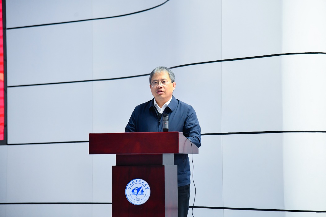 张平在颁奖典礼上讲话。他表示,经过近十四年的不懈探索,北航华班已经成为科研国家队与高水平研究型大学强强联合、在优势基础学科建立英才班的成功典范。希望各位同学情理兼修、德才兼备,不仅要努力学习专业知识、锤炼科研能力,也要重视陶冶情操、培养人文情怀;希望各位同学爱国奉献、勇于担当,将华罗庚先生立身养德的坚守、爱国奉献的担当和开拓创新的追求融于血液,珍惜时光、勤笃求真,努力成为担当民族复兴大任的时代新人和栋梁之才。