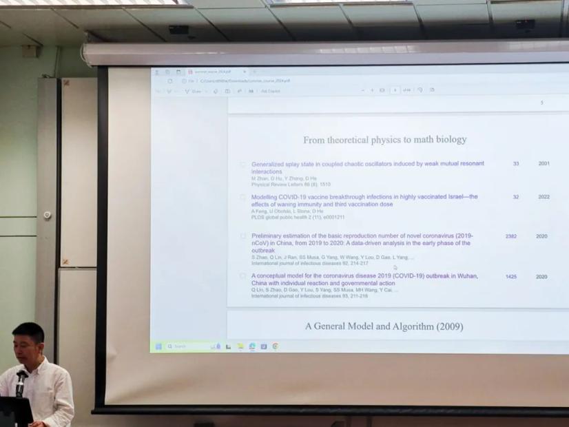 何岱海教授主讲讲座Modeling of the Spread of Infectious Diseases,介绍了建模传染病模型所需的数学工具,之后讲解了SEIR模型、SIR模型和季节性强迫SIR/SEIR模型等常见有关数学模型。