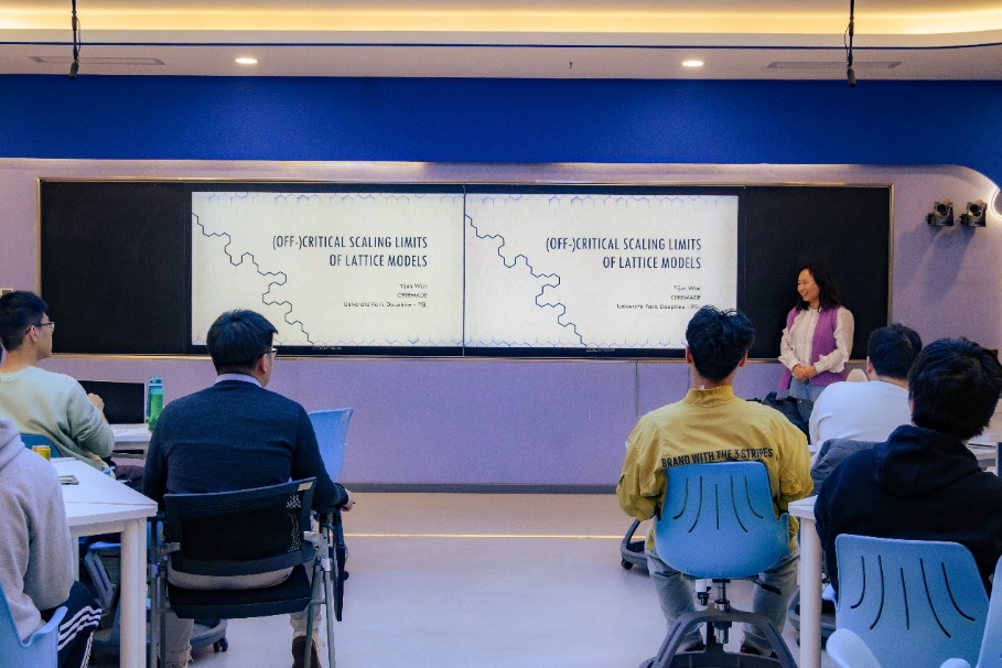 此次报告主题是统计物理中临界点附近格点模型的缩放极限。在报告中,万艺君从动机、离散格点模型、连续模型和二者之间的关联四部分进行介绍。万艺君首先用大家耳熟能详的模型,如随机游走和自避游走模型,引起大家兴趣;随后自然地引入一些统计物理学中的概念和更深刻的数学工具,由表及里,深入浅出。在场同学跟随她的思路,逐步领略她所述各类模型之精巧,兴趣盎然。在报告的最后,她鼓励同学们以兴趣为导向去探索更多研究方向,并对于如何探索新方向给出了具体的建议。