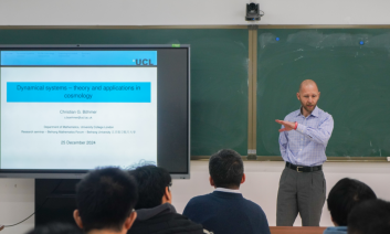 在本次报告中,Boehmer教授首先概述了动力系统,这是一个应用数学领域,其应用范围十分广泛。随后,Boehmer教授通过引入合适的变量重写宇宙场方程后,展示了一些简单的应用。最后,Boehmer教授对其进行概括和扩展,以展示如何将这些技术应用于各种不同的宇宙学模型,并讨论了涉及具有边界项耦合的宇宙流体的新结果。报告结束后,Boehmer教授与与会师生就更多有趣的问题进行了细致的探讨。