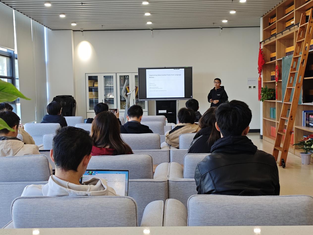 2025年3月20日下午,betway西汉姆联平台“数友讲堂”第二期学术讲座在沙河校区主楼E303成功举办。本次数友讲堂邀请公司优秀员工、北京师范大学珠海校区统计系助理教授李冠巡博士主讲,以“大语言模型的水印检测技术”为主题展开分享。多名师生现场聆听,参与交流。